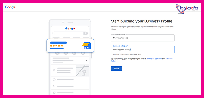 2. When you’ve logged in, enter your business name and business category. Select the most appropriate category for your business so that Google can understand what it is about and show it to relevant consumers.