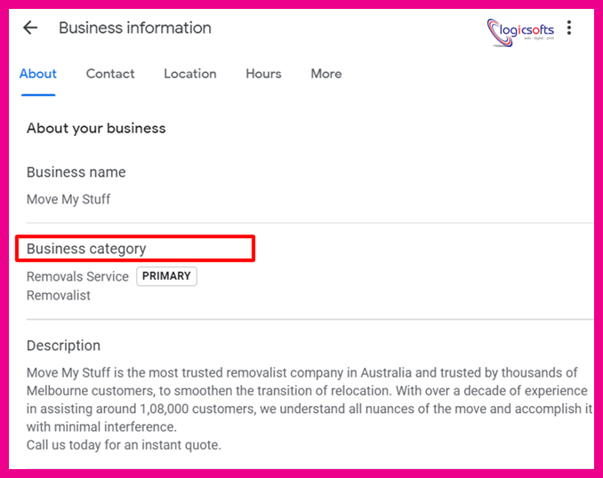 To improve your Google My Business profile, include accurate and precise information about your moving company, such as operating business days, services offered, business description, and contact and other business information.